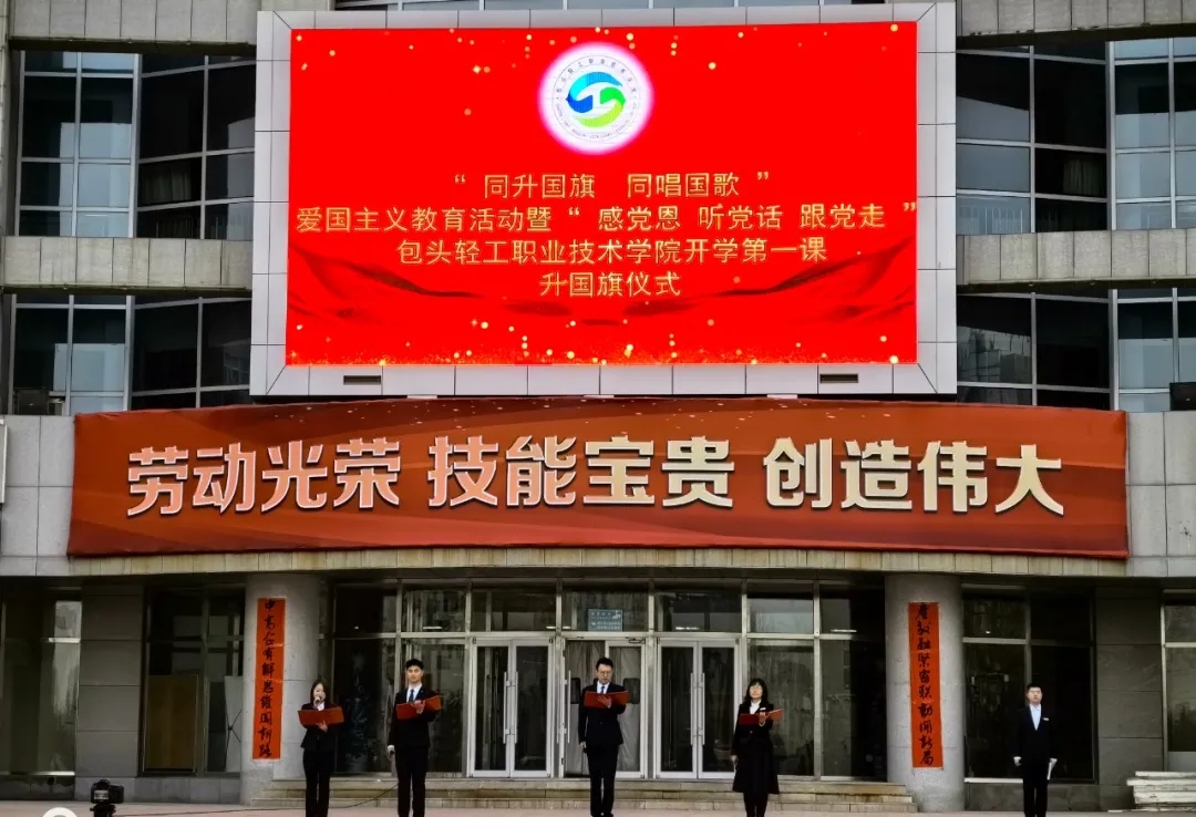 3月4日清晨,包头轻工职业技术学院在行知广场举行2024年春季学期“同升国旗 同唱国歌”爱国主义教育活动暨“感党恩 听党话 跟党走”新学期开学第一课升国旗仪式主题教育活动。学院领导班子成员、全体教职工、全体学生参加仪式。