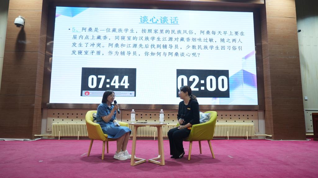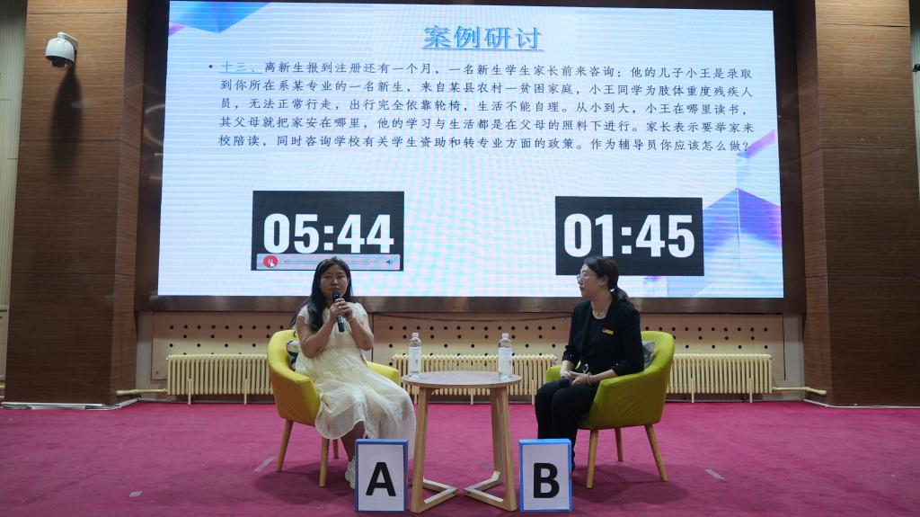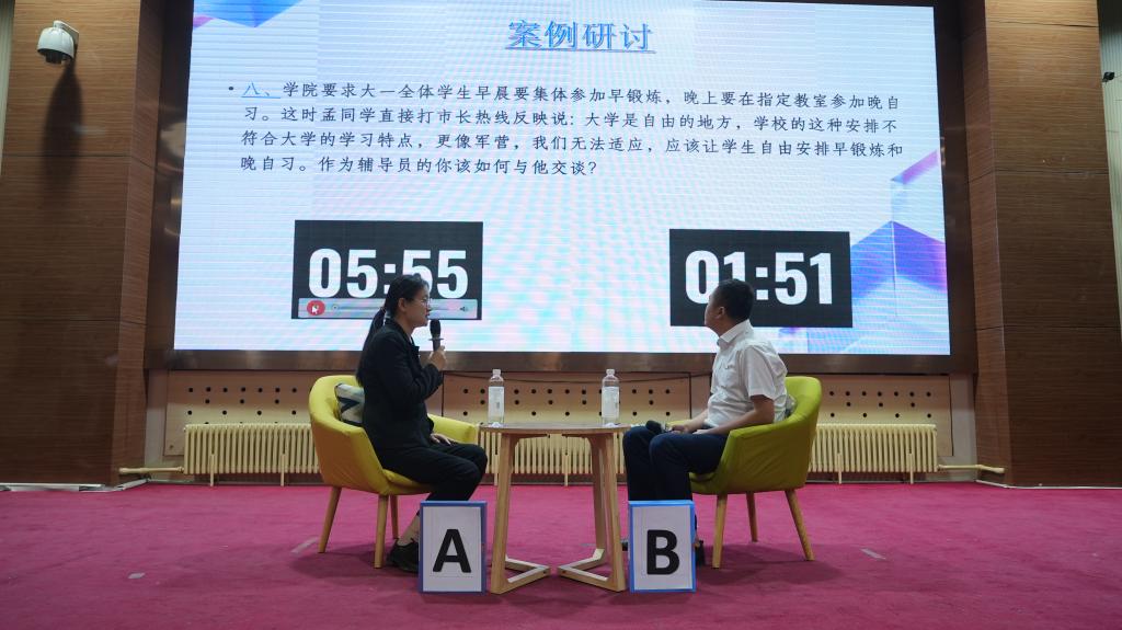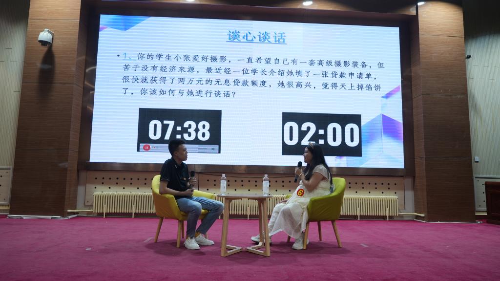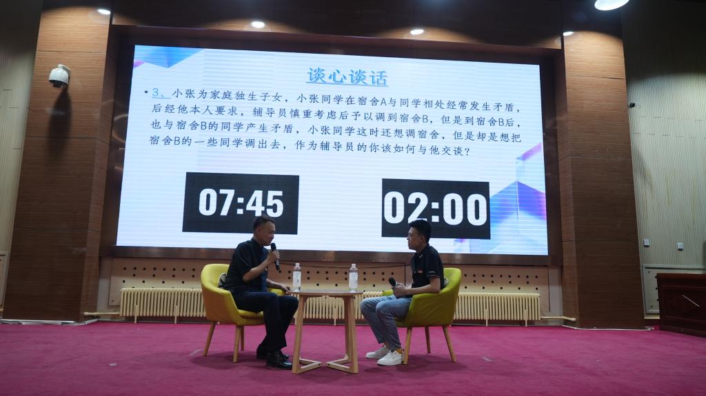 经过初赛笔试环节的激烈角逐,王玮、周易等10名辅导员(班主任)进入决赛。决赛共有案例研讨和谈心谈话两个环节,旨在全面考察辅导员的理论分析能力、应急处突能力、教育引导能力以及解决实际问题的能力等。