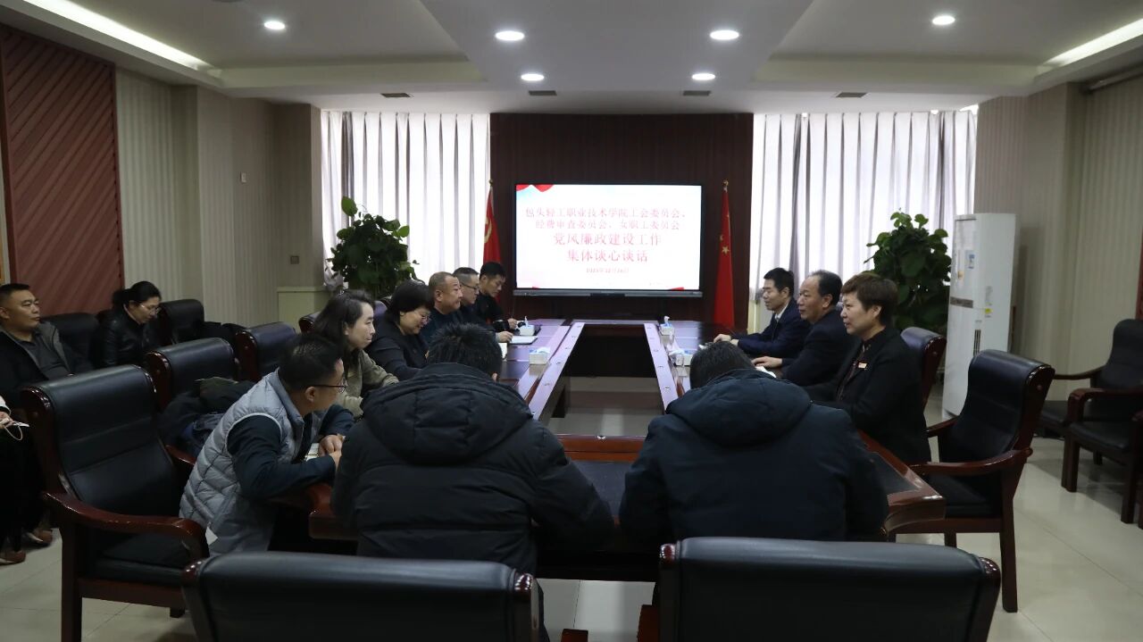 12月26日,学院召开新一届工会委员会、经费审查委员会、女职工委员会党风廉政建设工作集体谈心谈话。党委副书记姚锡锋,党委委员、纪委书记范维瑾,党委委员、宣传统战部部长吕林旺出席会议。
