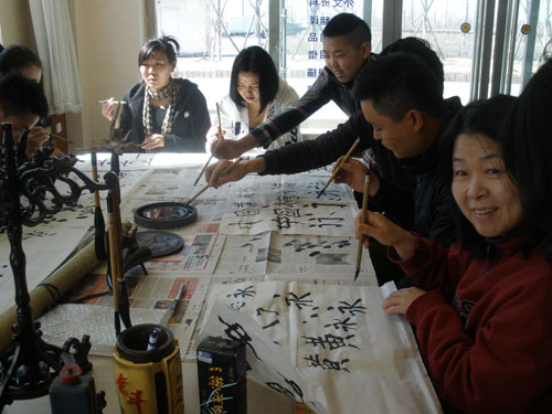 图五:体验写书法的乐趣