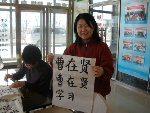 留学生们体验的第一节文化课,是由国际教育交流中心主任吕林旺主任亲自讲授的书法课。中国书法是一门古老的艺术,它伴随着中华文明的发展而发展。世界上拥有书法艺术的民族屈指可数,中国书法源远流长,具有悠久的历史,是中国古老文化的载体。听完吕主任的耐心讲解,同学们开始自己动手练笔画、写永”字,写自己的名字。个个神情专注、精心书写,兴趣高涨。