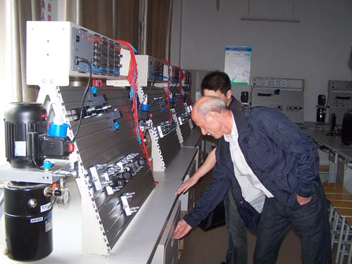 9月12日上午Eberhard Bauer先生参观了机电一体化FESTO培训中心,详细的了解了设备的配置情况和教学使用情况,并对电气液压实训设备进行了认真的检查,为即将到来的培训做准备。Eberhard Bauer先生认为机电一体化培训中心的设备达到了国际的一流水准,并对设备的教学使用和保养给出了很高的评价。参观后副院长侯建平同志和机电工程系领导与Eberhard Bauer先生进行了会谈。副院长侯建平同志对Eberhard Bauer先生的到来表示欢迎,对即将开展的培训表示期待,并预祝培训圆满成功。
