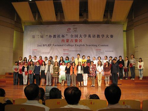 5月28日至29日,第二届外教社杯”全国大学英语教学大赛内蒙赛区比赛在内蒙古师范大学举行。本次大赛是由教育部高等学校外语专业教学指导委员会、教育部高等学校大学外语教学指导委员会、内蒙古自治区教育厅和上海外语教育出版社共同联合主办,内蒙古师范大学承办,内蒙古自治区高等学校外语教学研究会协办。来自全区36所院校、65名选手参加了复赛和决赛。经过紧张激烈的比赛,国际教育交流中心推选两名青年教师李如、刘芳表现突出,获得优胜奖。 自治区教育厅副厅长侯元、内蒙古师范大学校长杨一江等出席了颁奖典礼。
