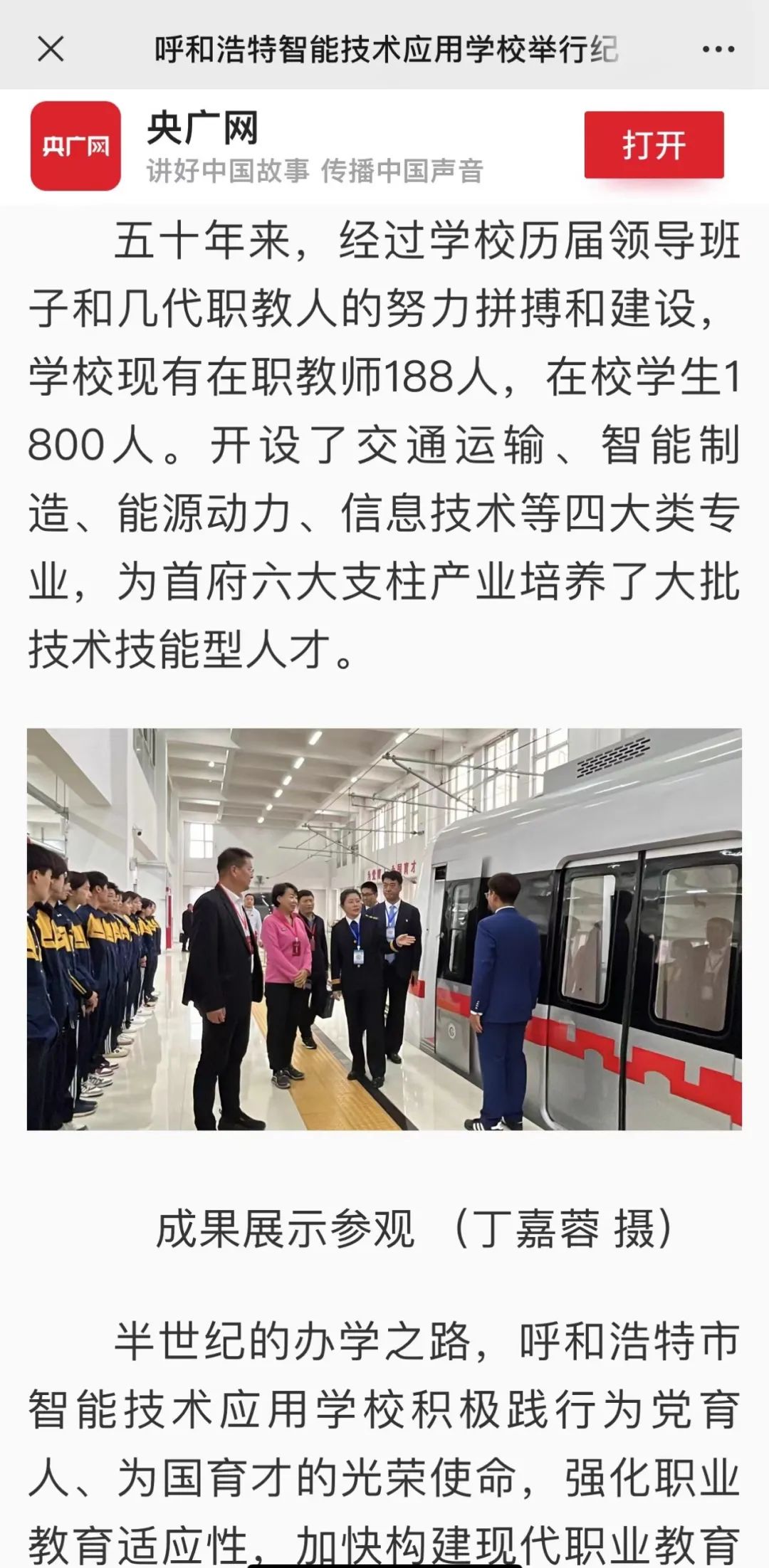 央广网刊登呼和浩特市智能技术应用学校举办纪念建校50周年成果展